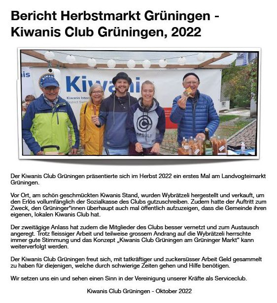 abschliessen. Dieses Jahr waren wir mit sechs Mitgliedern und zwei Helferinnen für das Wohl der Besucher der
